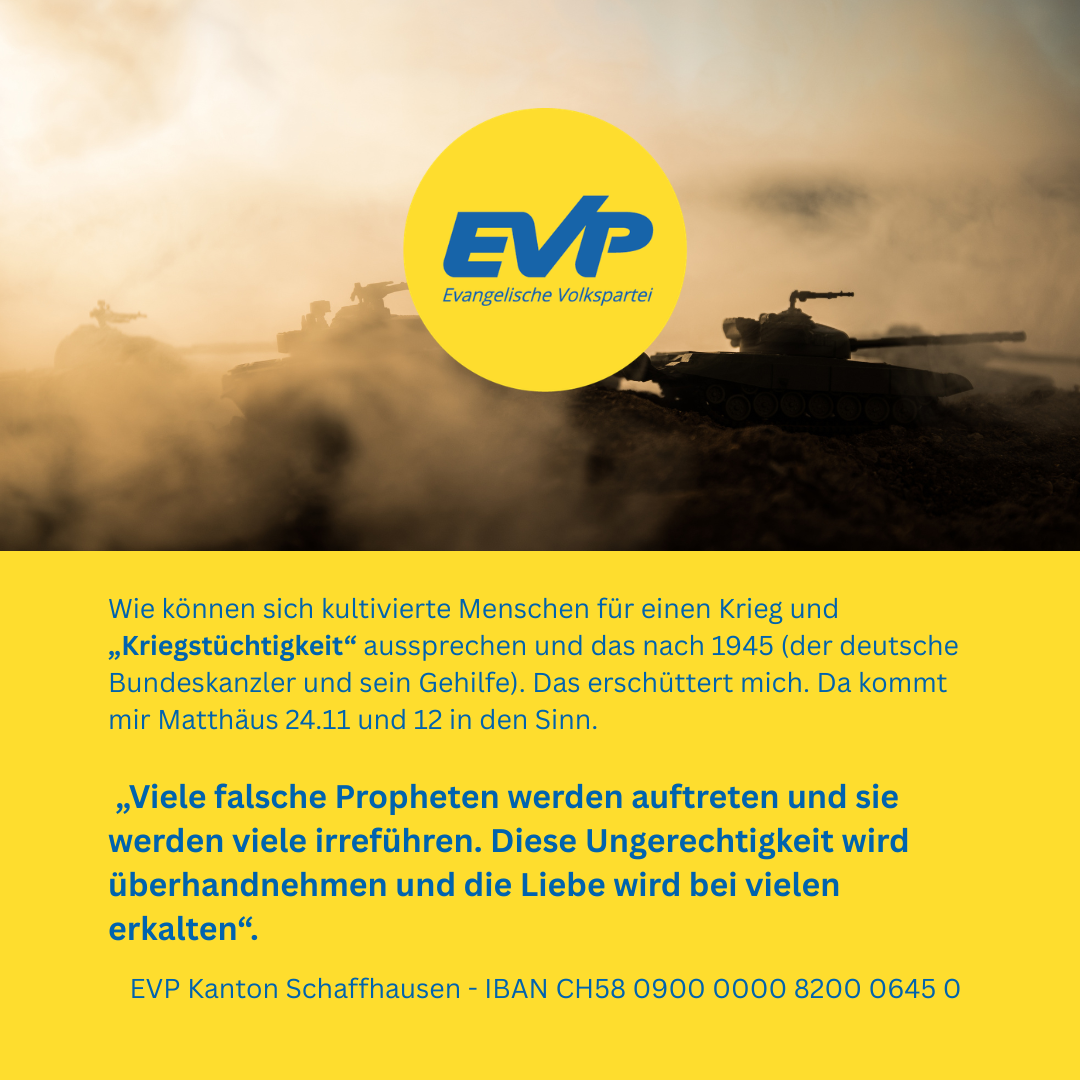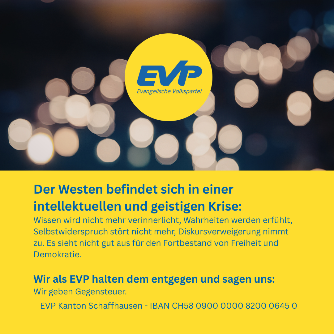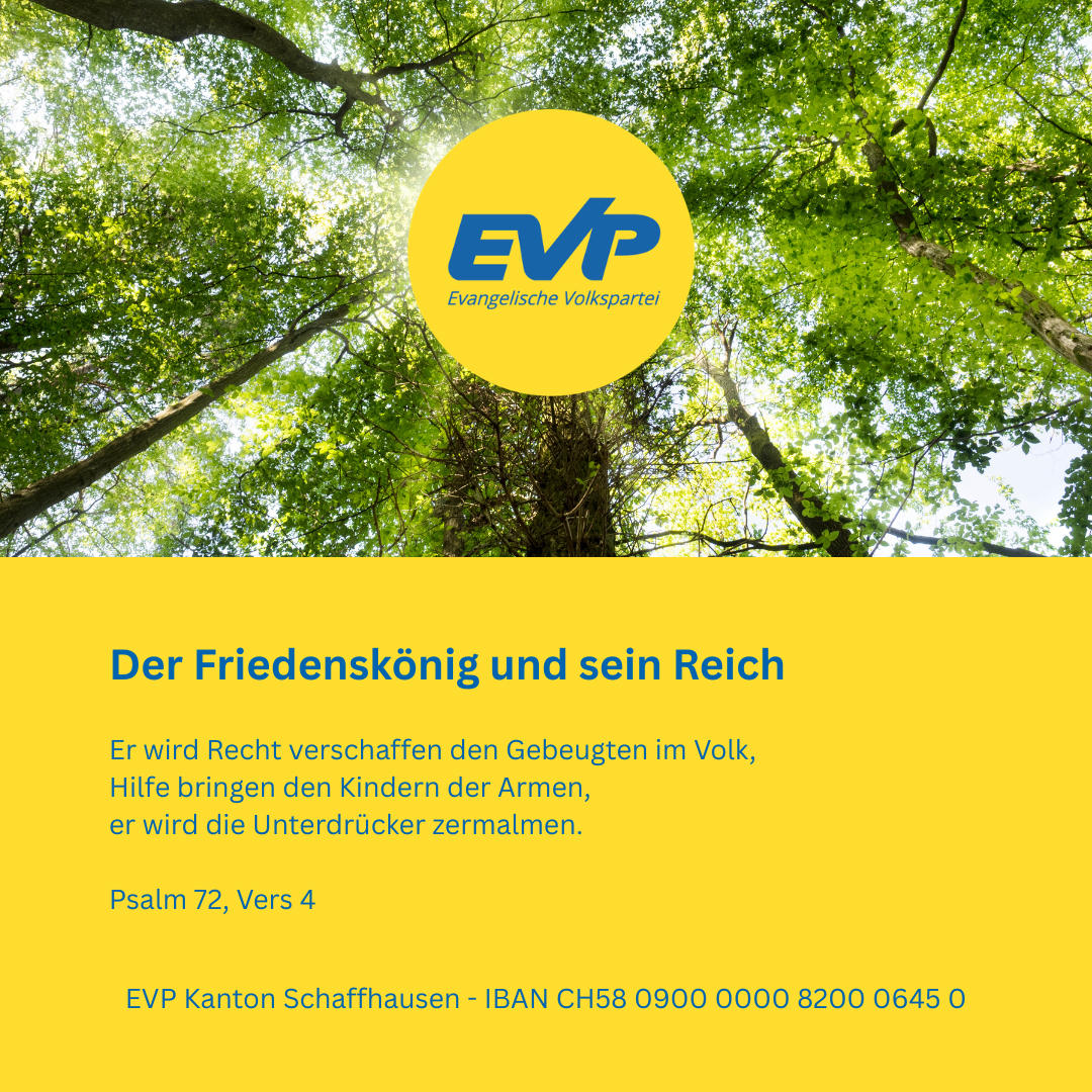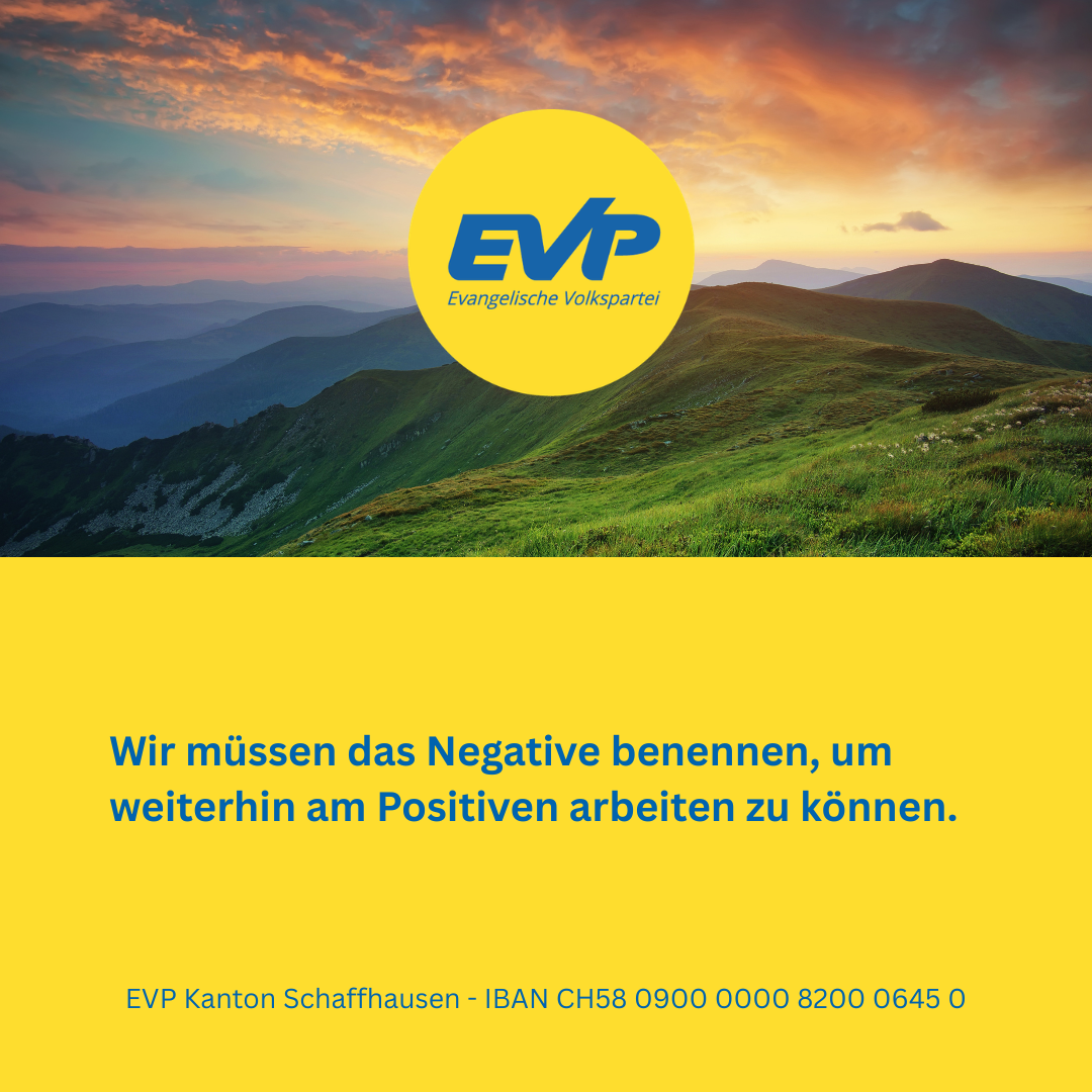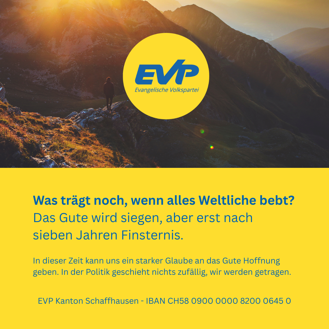 EVP Schaffhausen - seit über 100 Jahren - für eine verlässliche Politik der Mitte aus Leidenschaft für Mensch und Umwelt!